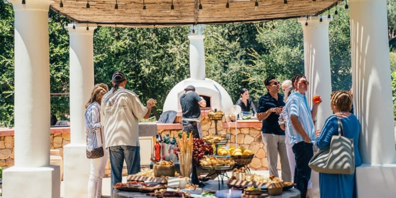 On a sunny day in Santa Barbara, Billy Rose invited clients and friends to sip Aperol Spritzes as they took in the palatial grounds of 848 Hot Springs Road, a 2.5-acre estate inspired by the legendary, 13th-century Alhambra palace in Granada, Spain. Guests strolled through the lemon tree-shaded garden and enjoyed pizzas made fresh in the estate’s outdoor stone oven.